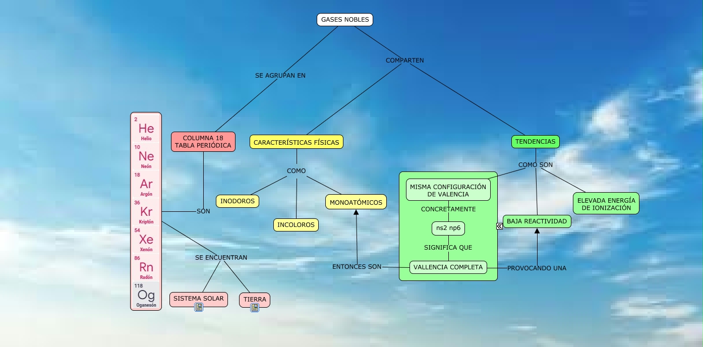 Este Cmap, tiene información relacionada con: Gases Nobles - Raúl Barquero, CARACTER�STICAS F�SICAS COMO MONOATÓMICOS, GASES NOBLES SE AGRUPAN EN COLUMNA 18 TABLA PERIÓDICA, MISMA CONFIGURACIÓN DE VALENCIA CONCRETAMENTE ns2 np6, TENDENCIAS COMO SON BAJA REACTIVIDAD, TENDENCIAS COMO SON ELEVADA ENERG�A DE IONIZACIÓN, GASES NOBLES COMPARTEN TENDENCIAS, VALLENCIA COMPLETA ENTONCES SON MONOATÓMICOS, CARACTER�STICAS F�SICAS COMO INODOROS, SE ENCUENTRAN SISTEMA SOLAR, ns2 np6 SIGNIFICA QUE VALLENCIA COMPLETA, VALLENCIA COMPLETA PROVOCANDO UNA BAJA REACTIVIDAD, CARACTER�STICAS F�SICAS COMO INCOLOROS, TENDENCIAS COMO SON MISMA CONFIGURACIÓN DE VALENCIA, GASES NOBLES COMPARTEN CARACTER�STICAS F�SICAS, SE ENCUENTRAN TIERRA, COLUMNA 18 TABLA PERIÓDICA SON