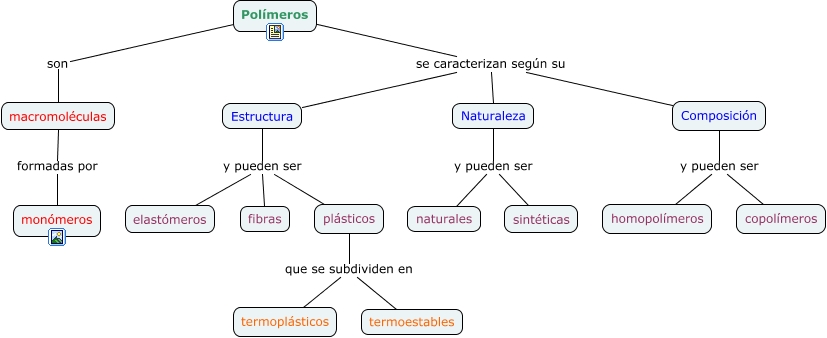 Este Cmap, tiene información relacionada con: Polímeros Pablo PD, Polímeros son macromoléculas, Estructura y pueden ser plásticos, Naturaleza y pueden ser sintéticas, Estructura y pueden ser fibras, Polímeros se caracterizan según su Naturaleza, macromoléculas formadas por monómeros, Polímeros se caracterizan según su Estructura, Naturaleza y pueden ser naturales, Composición y pueden ser homopolímeros, plásticos que se subdividen en termoplásticos, plásticos que se subdividen en termoestables, Polímeros se caracterizan según su Composición, Estructura y pueden ser elastómeros, Composición y pueden ser copolímeros