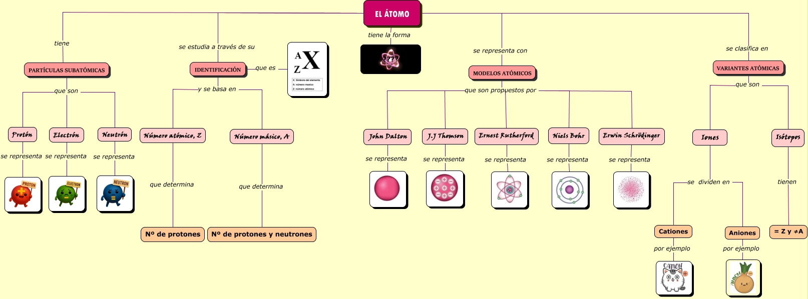 Este Cmap, tiene información relacionada con: Mapa conceptual del átomo. Ainhoa Gómez, IDENTIFICACIÓN y se basa en Número másico, A, Niels Bohr se representa, Isótopos tienen = Z y ≠A, VARIANTES ATÓMICAS que son Iones, Número másico, A que determina Nº de protones y neutrones, Neutrón se representa, MODELOS ATÓMICOS que son propuestos por Niels Bohr, Ernest Rutherford se representa, Cationes por ejemplo, PART�CULAS SUBATÓMICAS que son Neutrón, Iones se dividen en Cationes, MODELOS ATÓMICOS que son propuestos por Erwin Schrödinger, MODELOS ATÓMICOS que son propuestos por J.J Thomson, Protón se representa, Aniones por ejemplo, VARIANTES ATÓMICAS que son Isótopos, Erwin Schrödinger se representa, IDENTIFICACIÓN y se basa en Número atómico, Z, Número atómico, Z que determina Nº de protones, J.J Thomson se representa